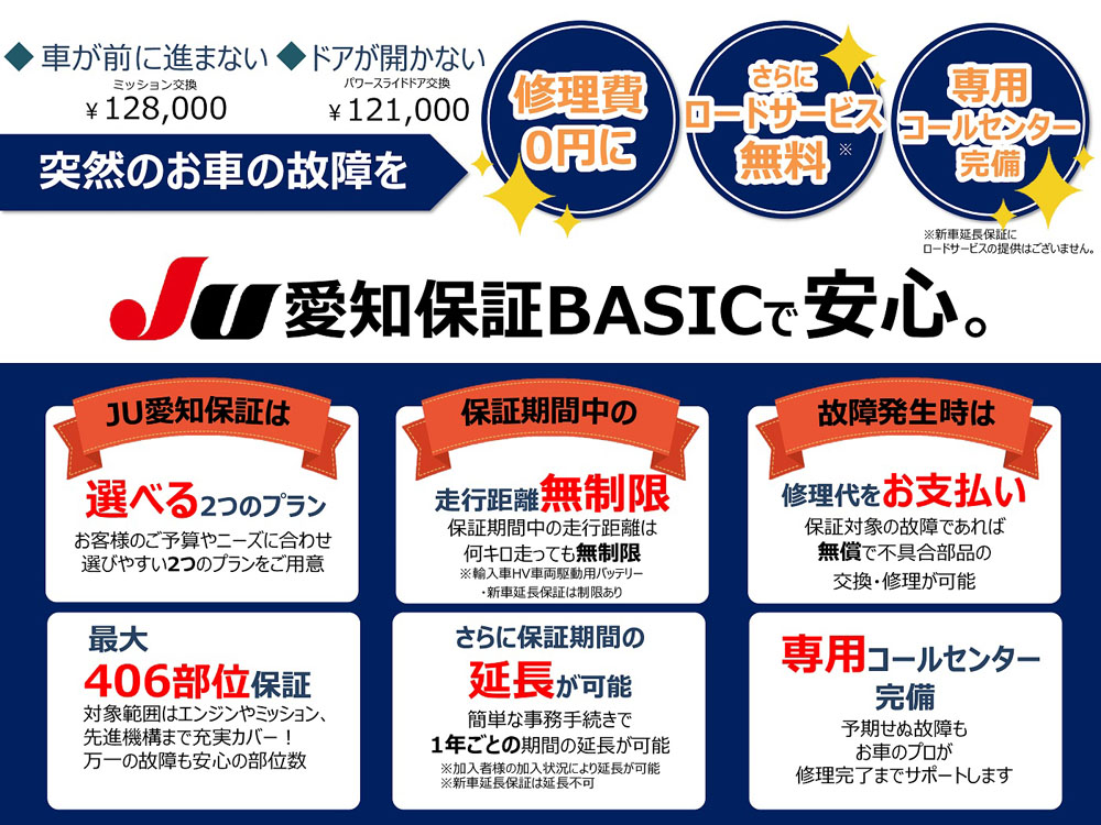 「プラチナ1年保証(JU愛知保証BASIC)」が自動付帯。