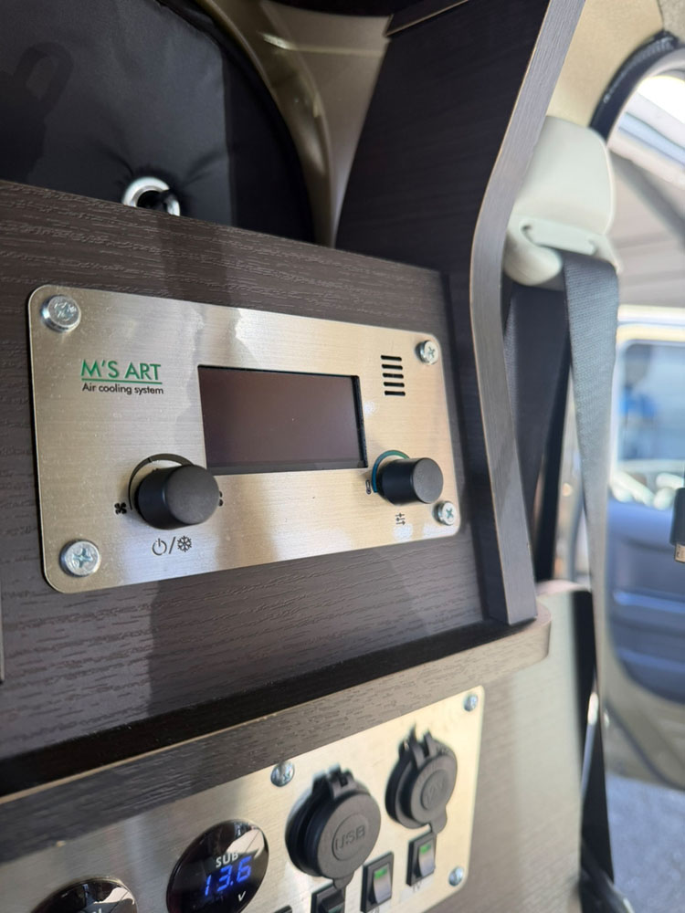当店オリジナルのビルトイン DC12Vクーラーは、家具と一体となったスマートな設計で、就寝時の空間を広く・快適に保ちます。