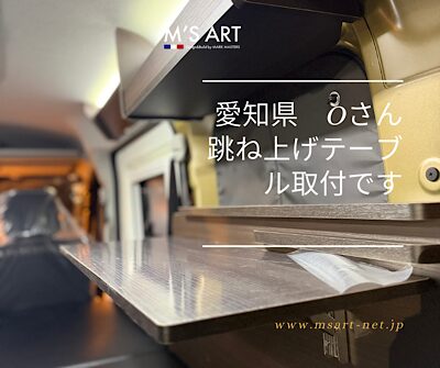 本日は、車内での過ごしやすさを左右する「跳ね上げテーブル」の設置を行っております。