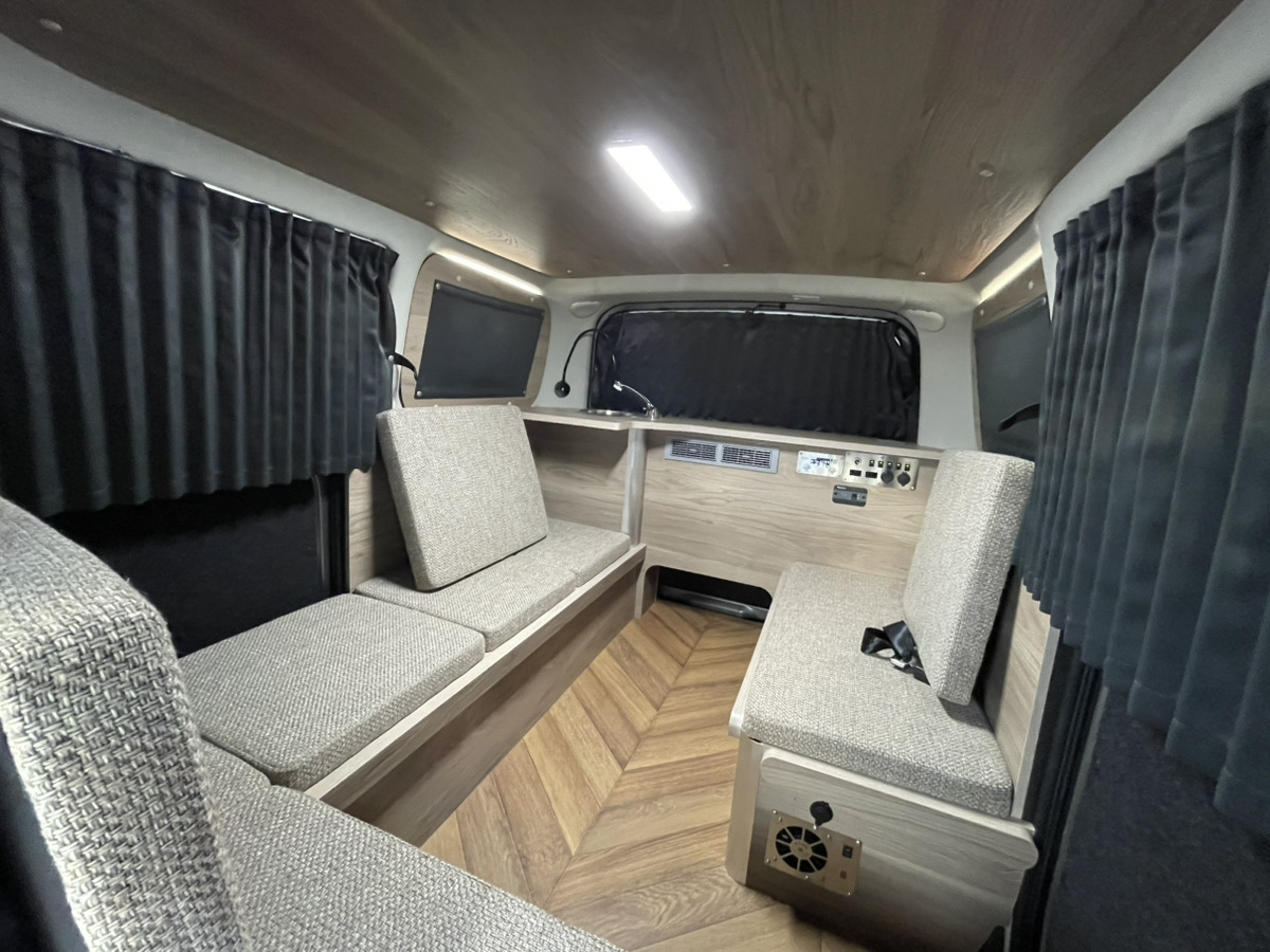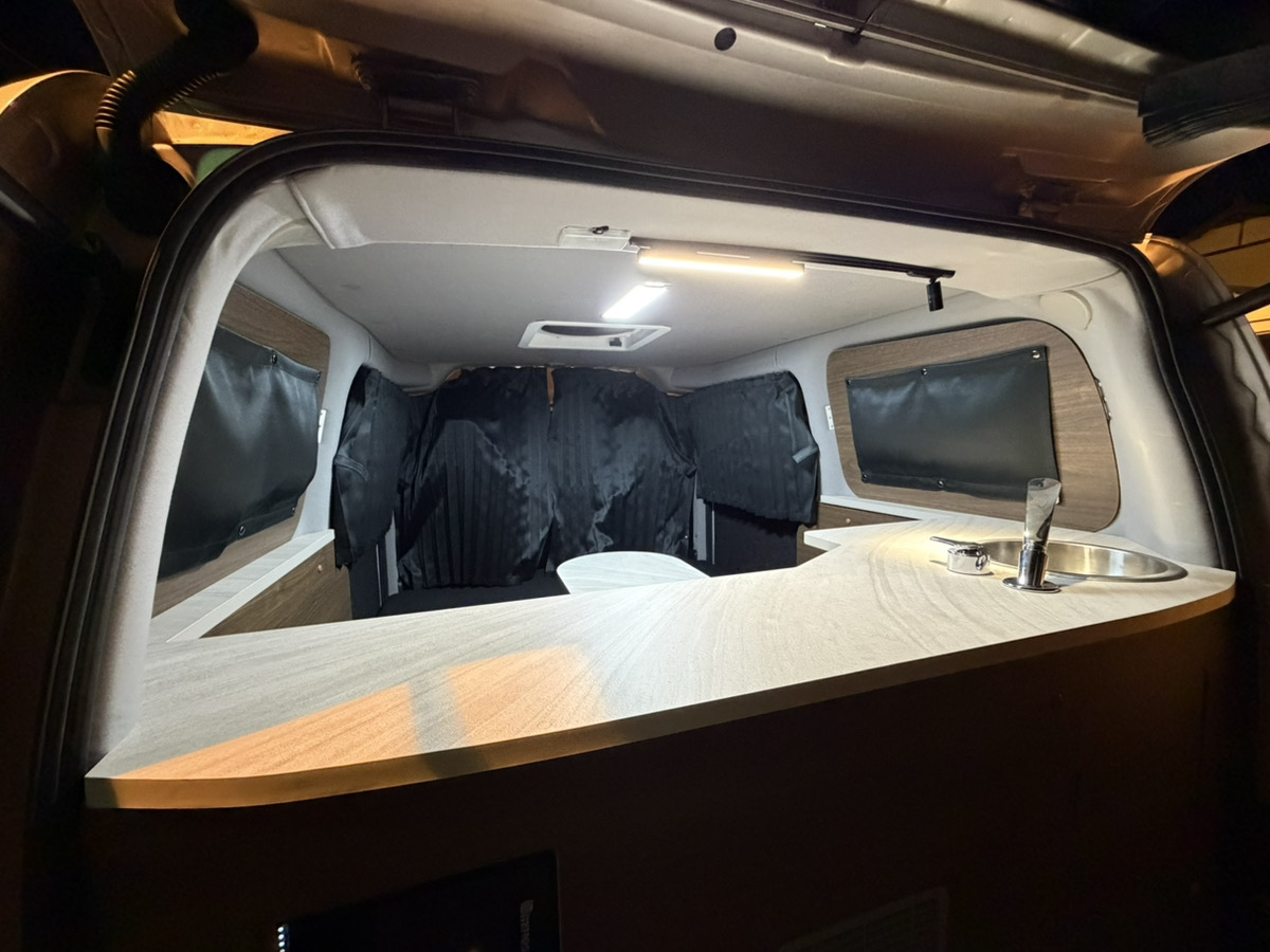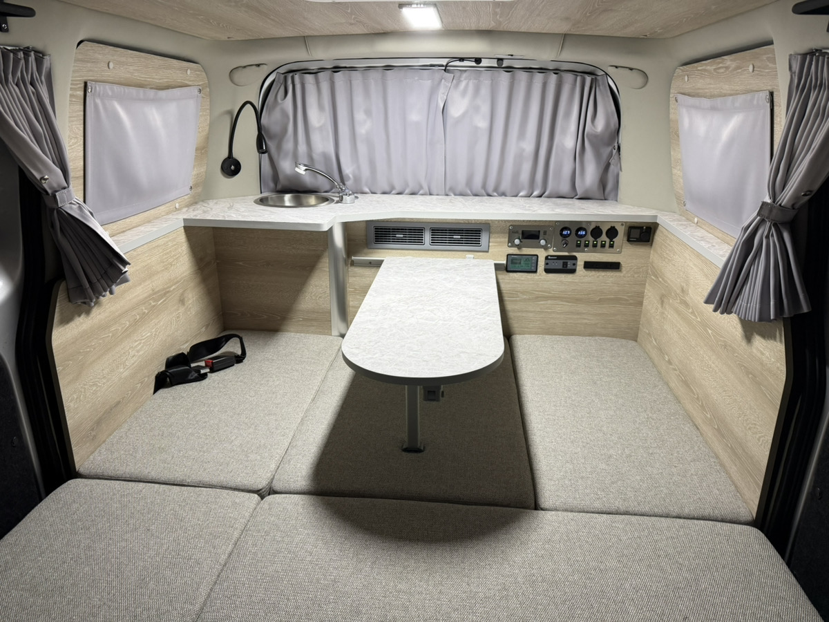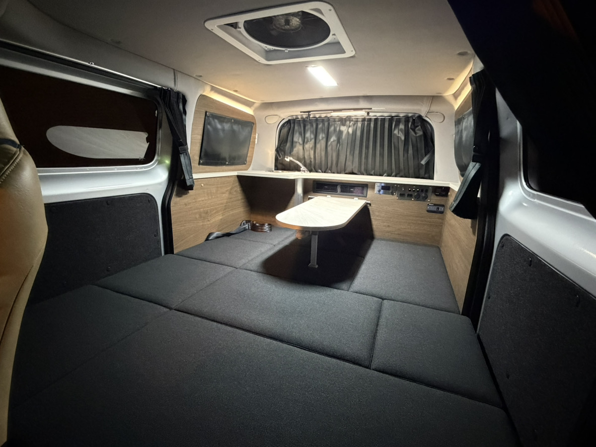 車両は中古車でも内装は新品施工なのでベッドやシンクの使用感はゼロ。もちろん電装品も新品です。